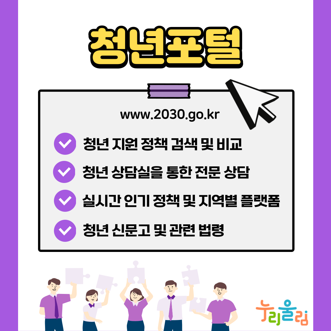마지막으로 청년을 위한 지원, 복지 플랫폼 등 확인할 수 있는 포털인 청년포털을 소개하겠습니다.