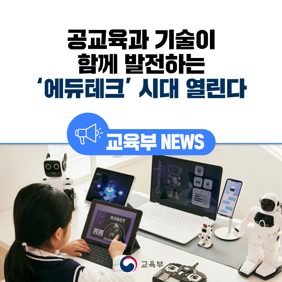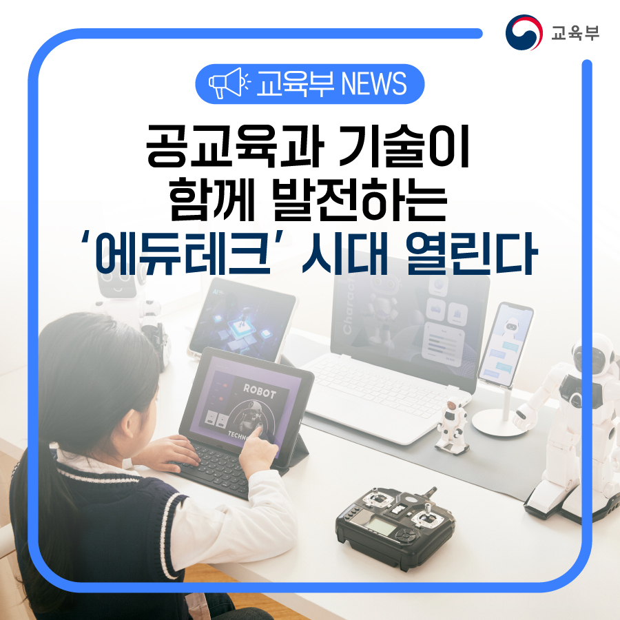 교육부는 ‘에듀테크 진흥’을 단순히 교육에 기술을 도입하는 것을 넘어 교육과 기술이 결합할 수 있는 환경을 조성하고, 교육 주체들이 기술을 적극적으로 활용하도록 하며, 공교육을 지원하는 에듀테크 산업의 성장을 지원하고, 이를 통해 디지털 기술 발전도 가속화하는 상생 생태계를 조성하는 것으로 정의하고, 에듀테크가 우리나라 공교육의 혁신을 이끌 수 있도록 할 계획이다.