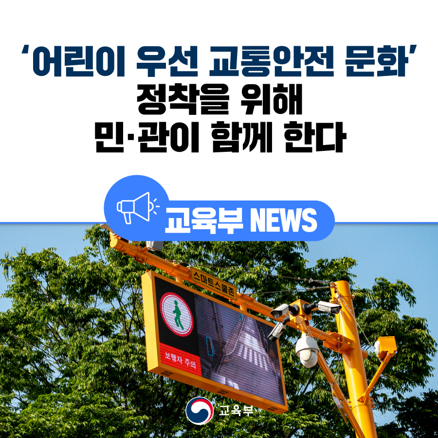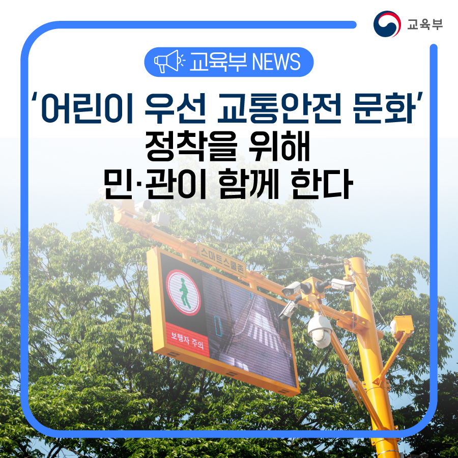 정부는 어린이 보호구역 내 어린이 교통사고를 근본적으로 예방하기 위해 고질적인 안전무시 관행 근절과 어린이 우선 교통문화 정착을 목표로 오늘 업무협약과 같이 민간 등 여러기관과 홍보수단들을 연계하여 어린이 교통안전에 대한 국민적 공감대를 확산해 나갈 계획이다.