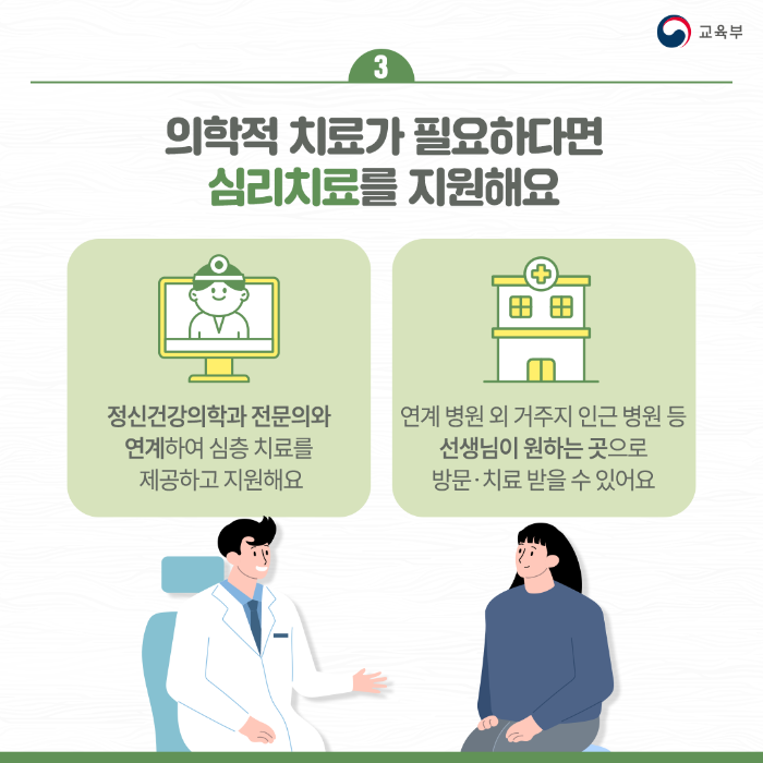 의학적 치료가 필요하다면 심리치료를 지원해요