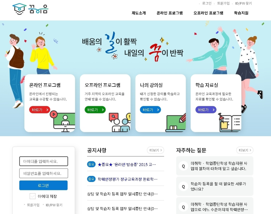 시작하기 전에, 꿈이음 누리집에서 학습자로 등록하셔야 하는 점 잊지 마세요!
