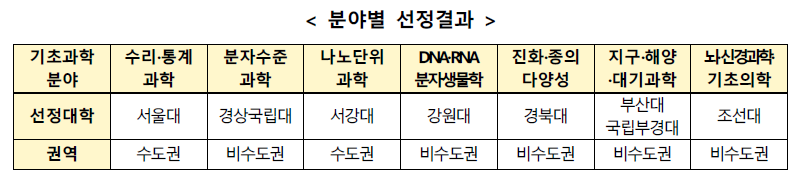 - 총 5년(3+2) 동안 매년 약 30억 원 지원, 대학의 기초과학 분야 연구관리체계 구축 및 혁신적 공동연구 수행 지원
