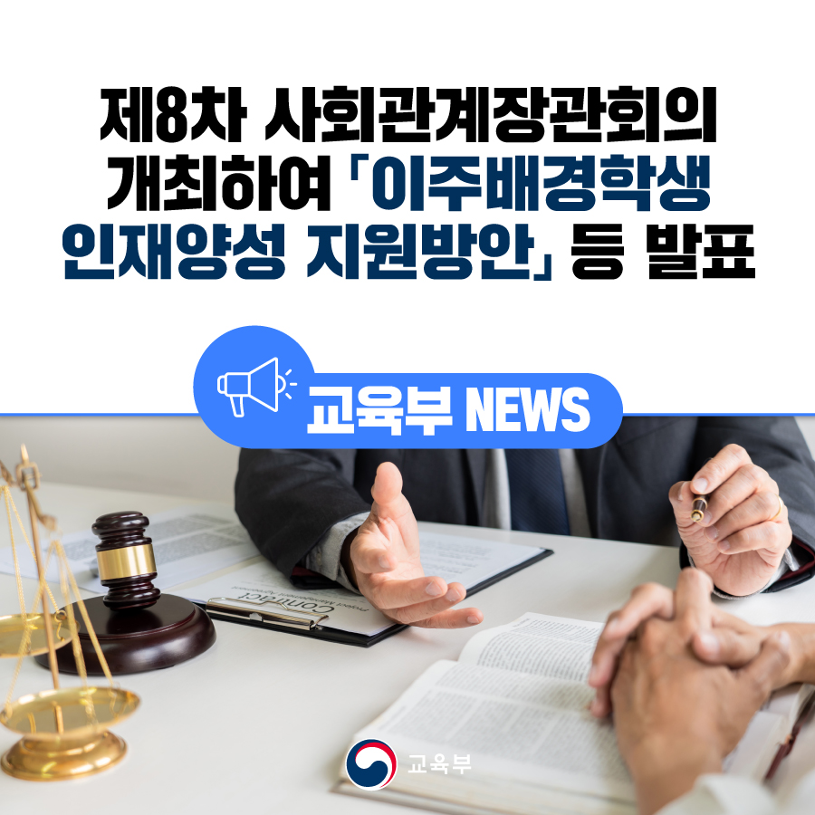 제8차 사회관계장관회의 개최하여 「이주배경학생 인재양성 지원방안」 등 발표 본문