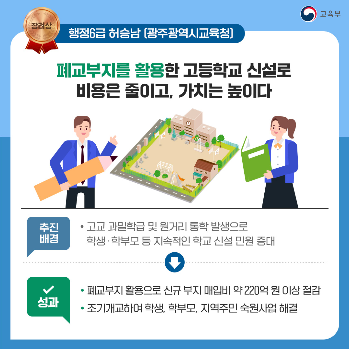 폐교부지를 활용한 고등학교 신설로 비용은 줄이고, 가치는 높이다