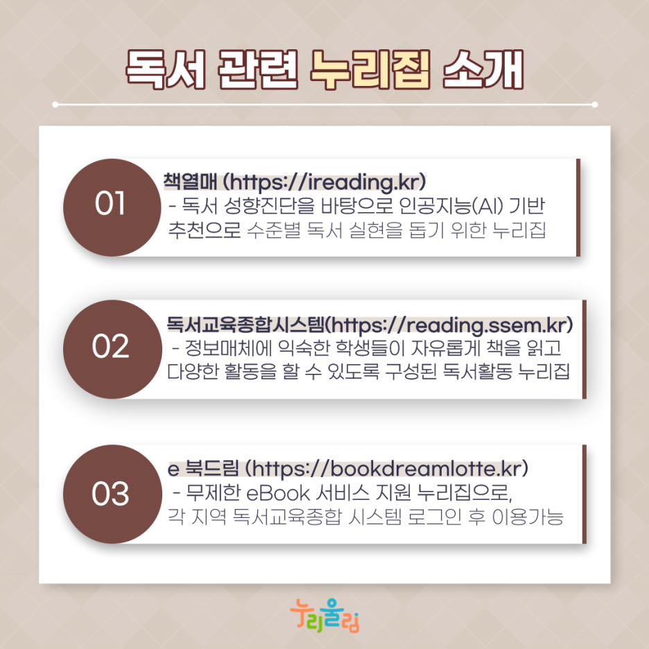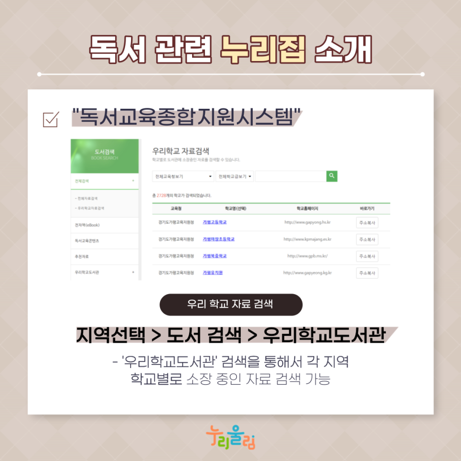 2) 독서교육종합지원시스템 https://reading.gglec.go.kr/