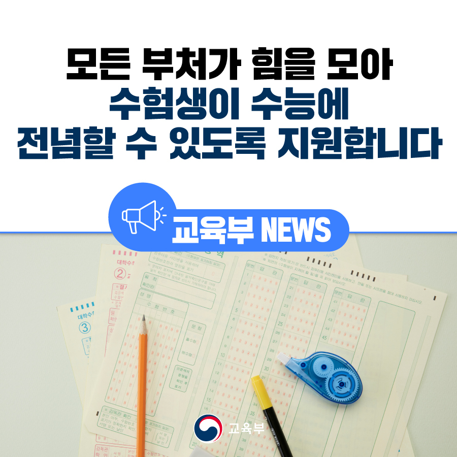 모든 부처가 힘을 모아 수험생이 수능에 전념할 수 있도록 지원합니다 본문