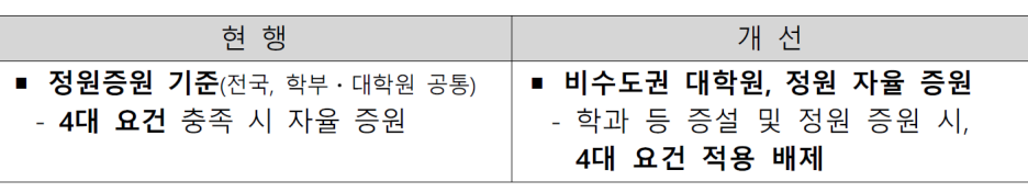 - 비수도권 대학원이 학과 증설 및 학생 정원 증원 시, 4대 요건 적용을 배제하는 대학설립·운영규정 개정안 입법예고