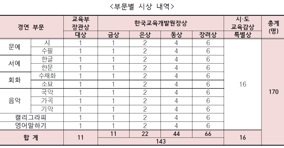- 교육부장관상 등 상장 총 170점 수여 및 방송통신중·고등학교 누리집에 수상작 게재