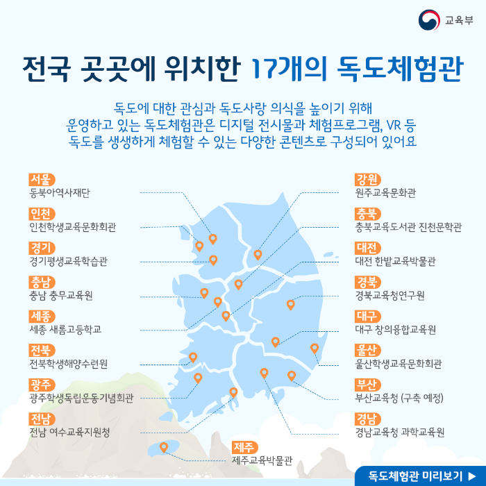 전국 곳곳에 위치한 17개의 독도체험관
