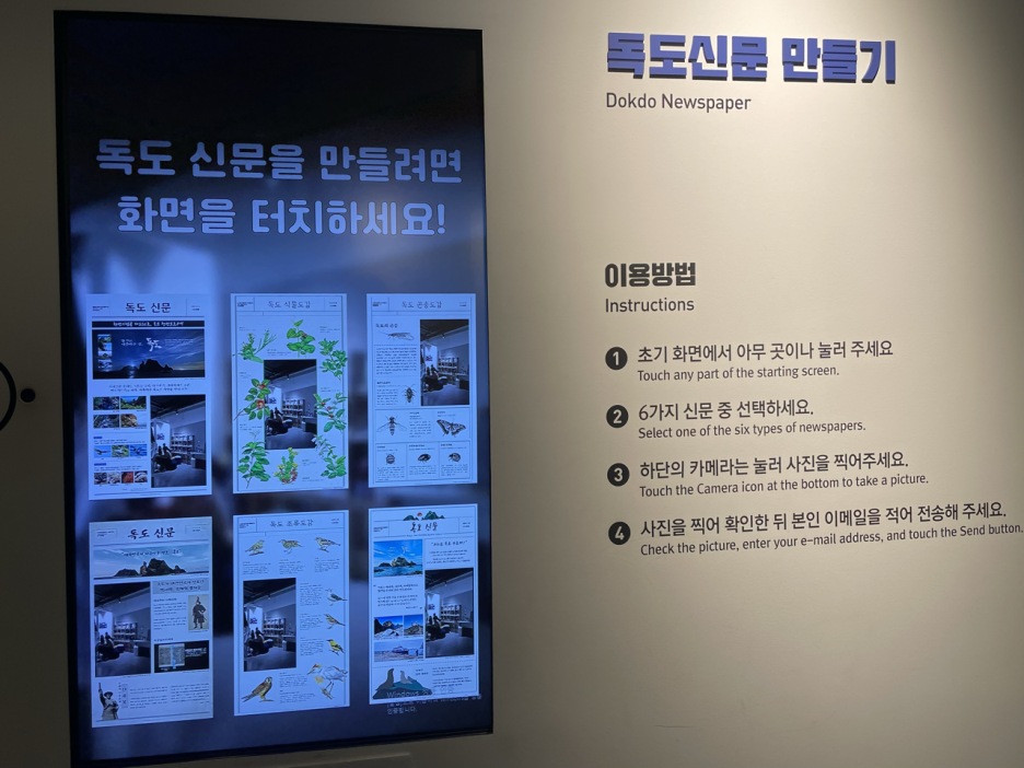 마지막 공간인 ‘독도의 미래’에서는 정부 및 기관 단체의 활동과 교육·홍보영상을 볼 수 있습니다. 또한, 다양한 독도 신문 디자인을 배경으로 기념사진을 찍을 수 있는 공간이 마련되어 있습니다.