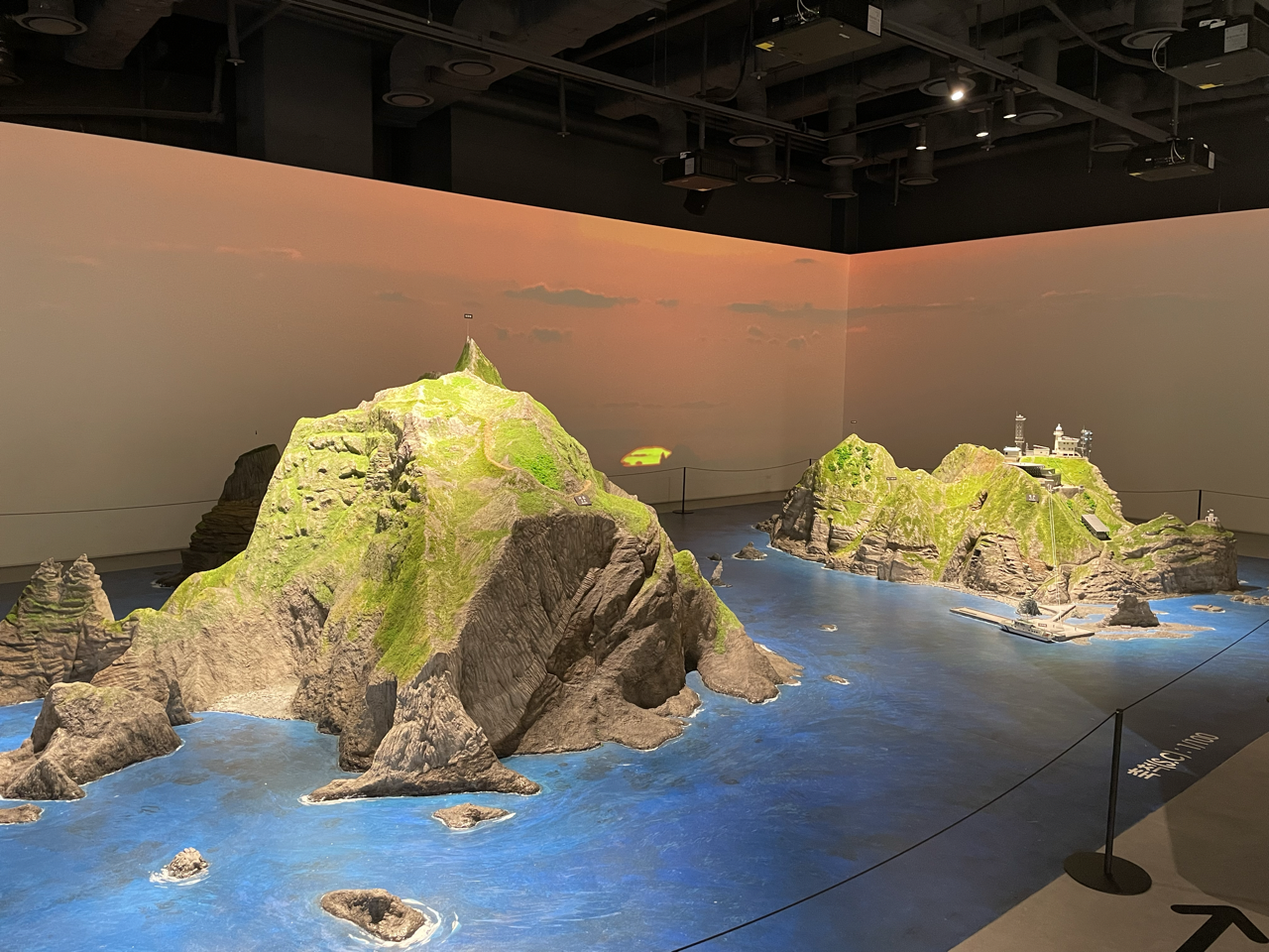 ‘독도의 자연’에서는 국내 최대 크기의 독도 모형을 볼 수 있는데요. 미디어 배경을 활용해 계절과 시간의 변화를 볼 수 있어서 정말 흥미로웠습니다. 한 편에는 독도의 생물과 사계를 오감으로 즐길 수 있는 체험존도 마련되어 있었고, 독도와 관련된 미생물을 관찰하고 동식물을 만져볼 수 있어, 마치 독도에 있다는 느낌을 받을 수 있었습니다.
