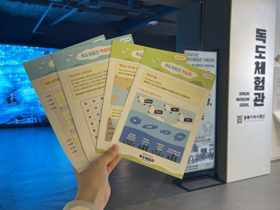 전시관에 들어가기 전, 간단한 퀴즈가 있는 학습지를 받아 볼 수 있는데요. 전시를 보기 전 퀴즈도 풀고 독도의 의미를 새길 수 있어 좋았습니다.