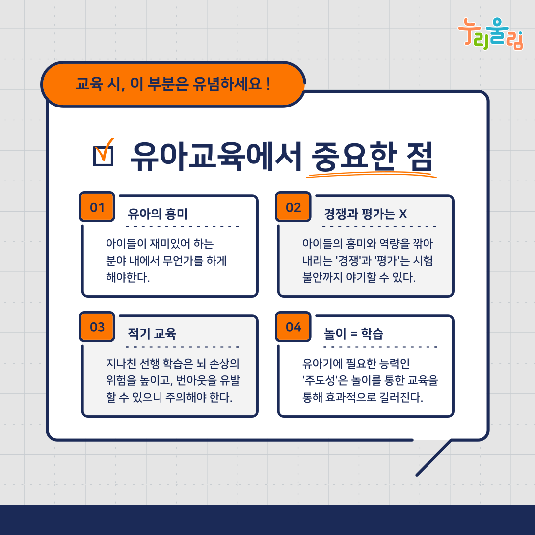 그럼, 마지막으로 유아교육에서 중요한 점을 확인해보겠습니다.