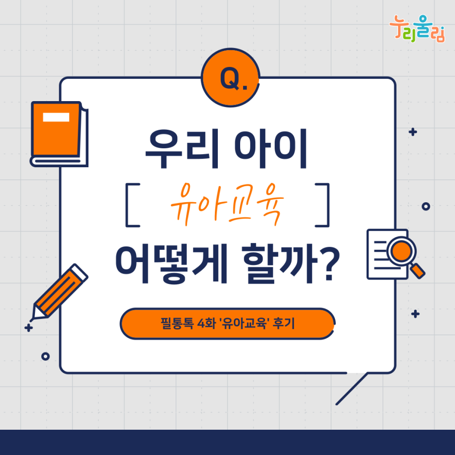 ‘유아교육, 어떻게 해야 할지 모르겠어요.’ ‘성장하는 아이에게 필요한 교육은 뭘까?’ 많은 영유아 부모님이 하고 계신 고민일 것 같습니다. 오늘 제가 소개해드릴 필통톡 영상 보시고, 함께 이야기해볼까요?