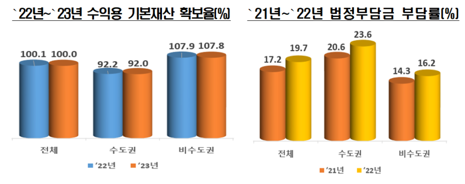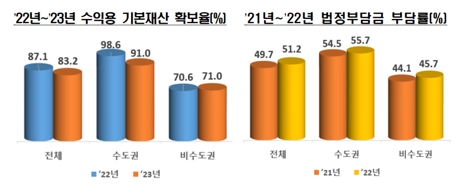 (수익용 기본재산) 2023년 사립대학 수익용 기본재산 확보율은 100.0%로 2022년(100.1%)보다 0.1%p 감소했다.