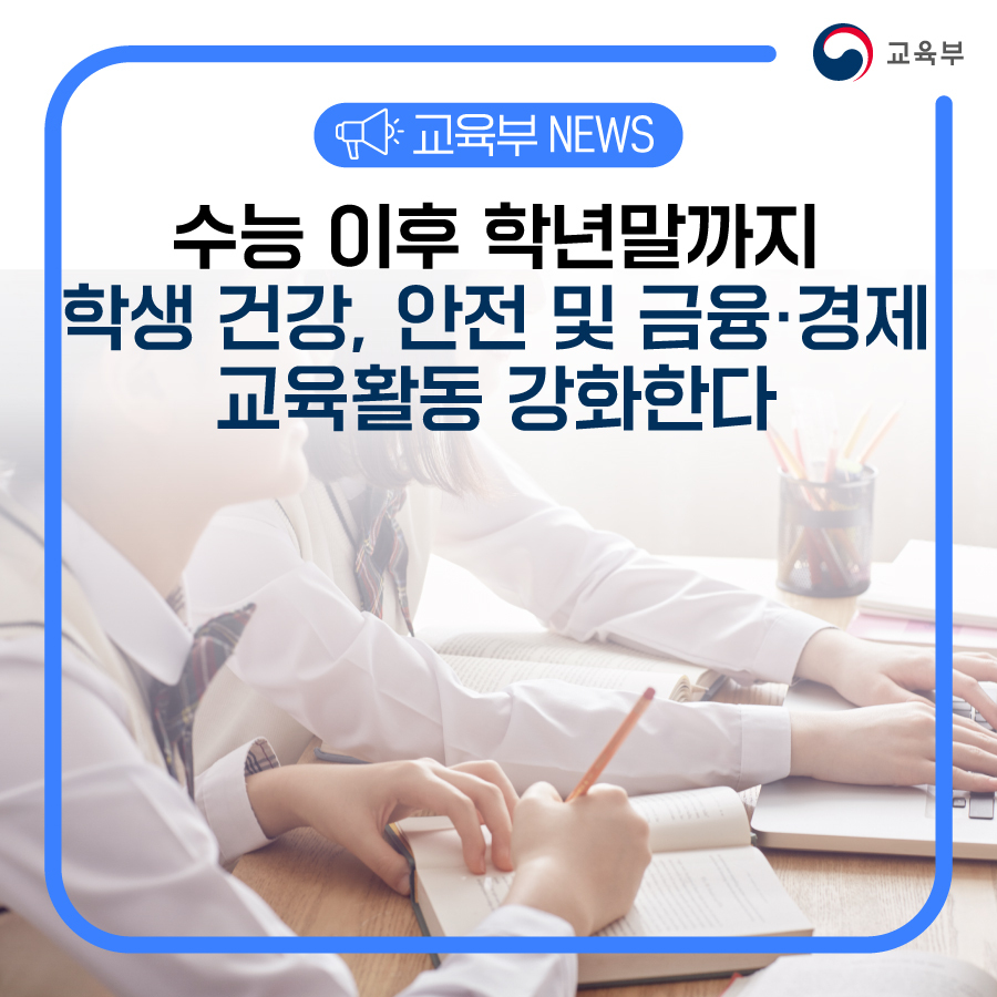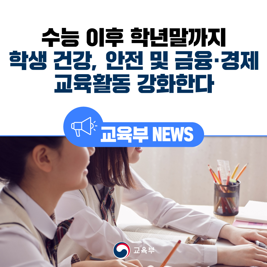 수능 이후 학년말까지 학생 건강, 안전 및 금융·경제 교육활동 강화한다 본문