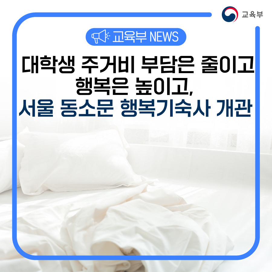 장상윤 교육부 차관은 “수도권 대학생들이 동소문 행복기숙사를 통해 주거비 부담을 덜고, 학업에 집중할 수 있게 되어 기쁘게 생각한다.”라고 말하며, “교육부는 관계기관과 협업하여 전국 청년들이 미래를 준비할 수 있는 따뜻한 보금자리를 지속해서 확대할 수 있도록 노력하겠다.”라고 밝혔다.