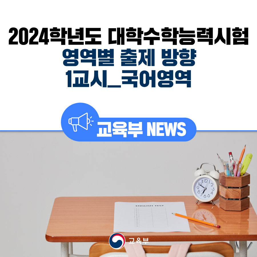 | 2024학년도 대학수학능력시험 영역별 출제 방향 3교시_영어영역 (0) | 2023.11.16 |