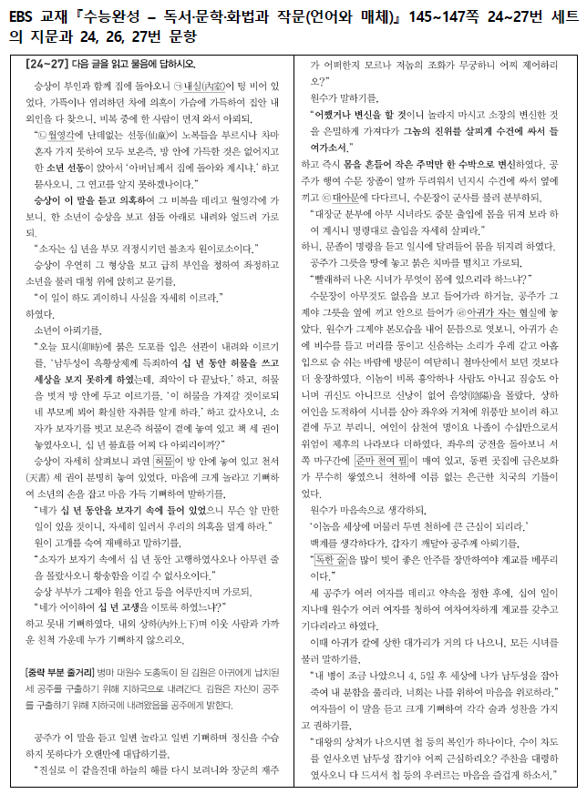 국어 영역에서 EBS 연계 교재와 연계하여 출제한 문항들을 EBS 교재 내용과 비교하여 제시하면 다음과 같다.