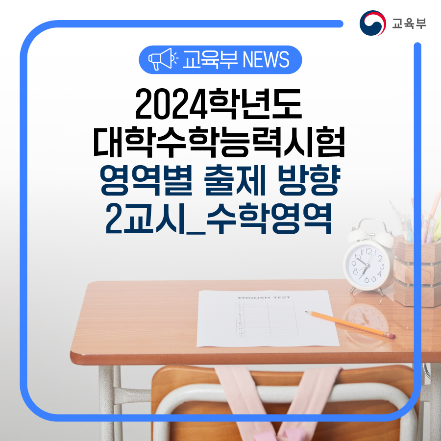 | 2024학년도 대학수학능력시험 영역별 출제 방향 3교시_영어영역 (0) | 2023.11.16 |
