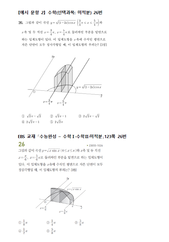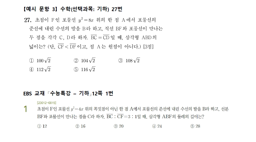 수학 영역에서 연계하여 출제된 문항을 EBS 연계 교재 문항과 비교하여 제시하면 다음과 같다.