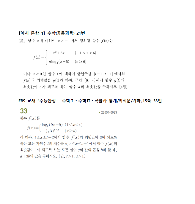 ◦ 수학 영역에서는 출제 범위에 속하는 과목의 내용과 수준에 맞추어, 고등학교 교육과정을 정상적으로 이수한 학생에게 적합한 문항을 출제하였다.