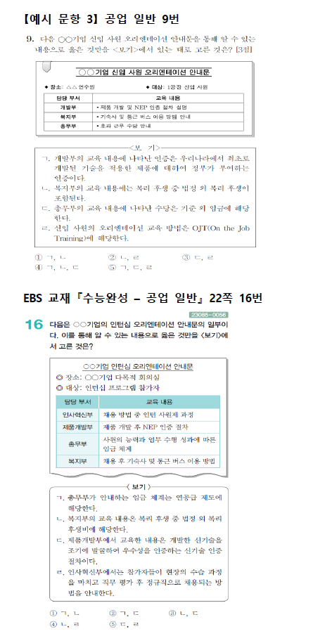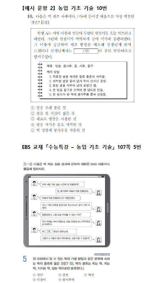직업탐구 영역에서 EBS 연계 교재와 연계하여 출제한 문항들을 EBS 교재 내용과 비교하여 제시하면 다음과 같다.