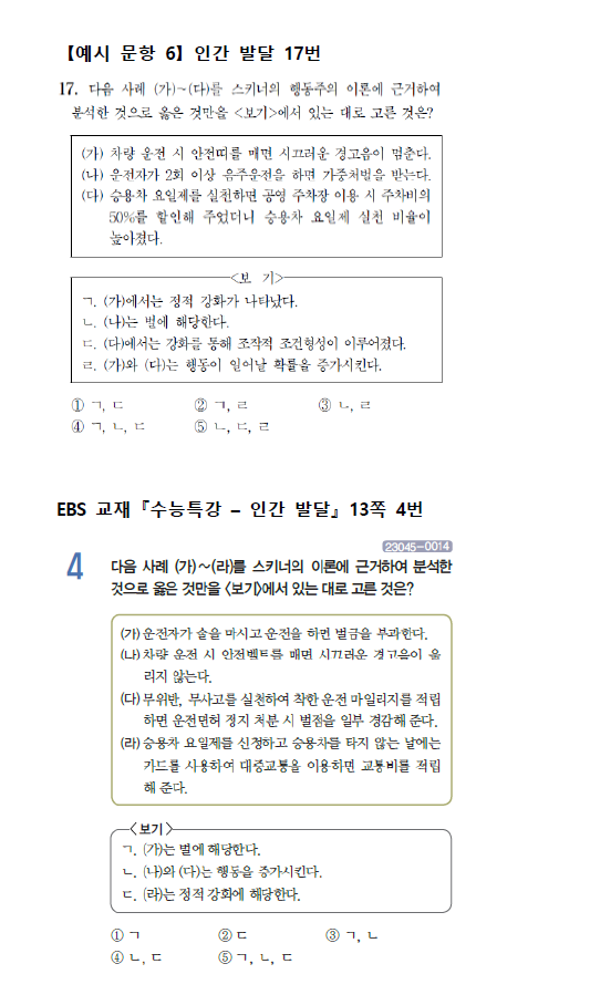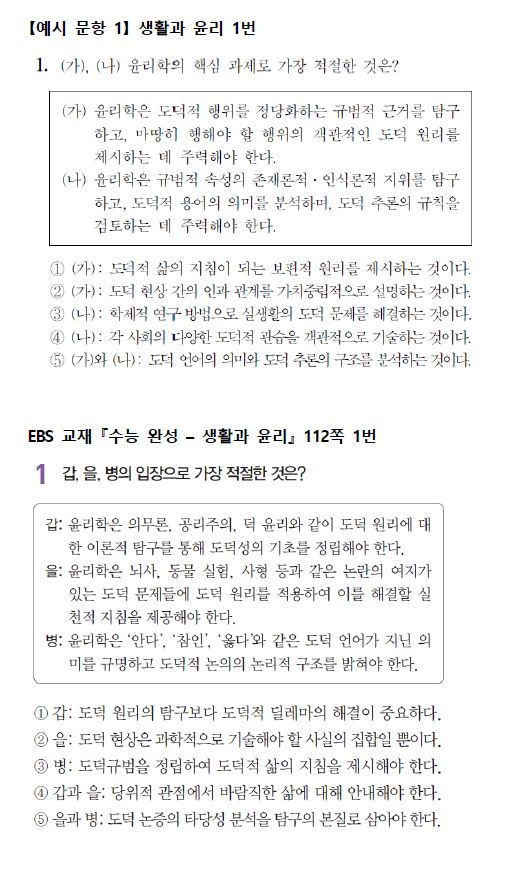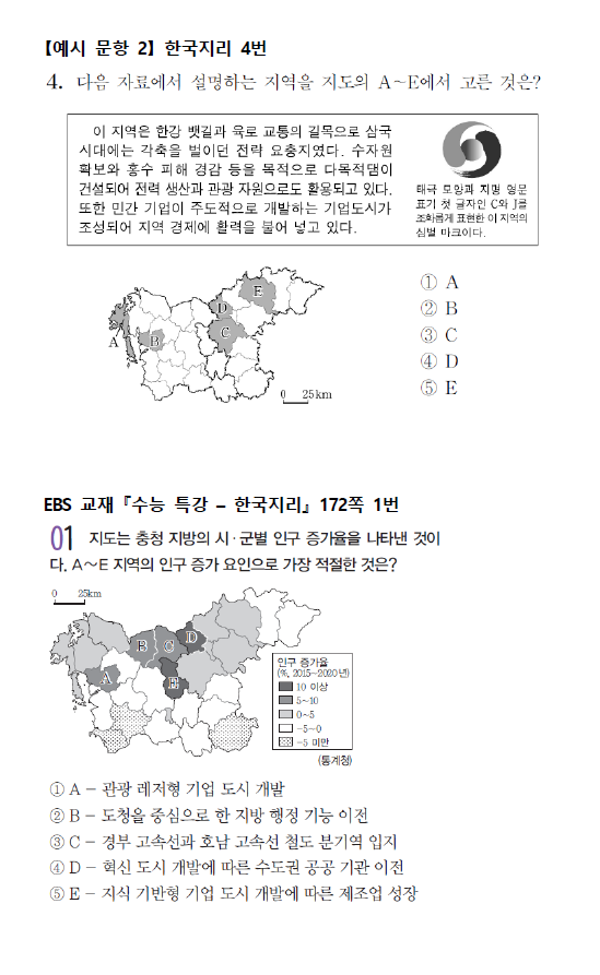 사회탐구 영역에서 연계하여 출제된 문항을 EBS 연계 교재 문항과 비교하여 제시하면 다음과 같다.