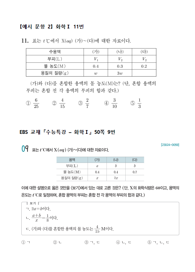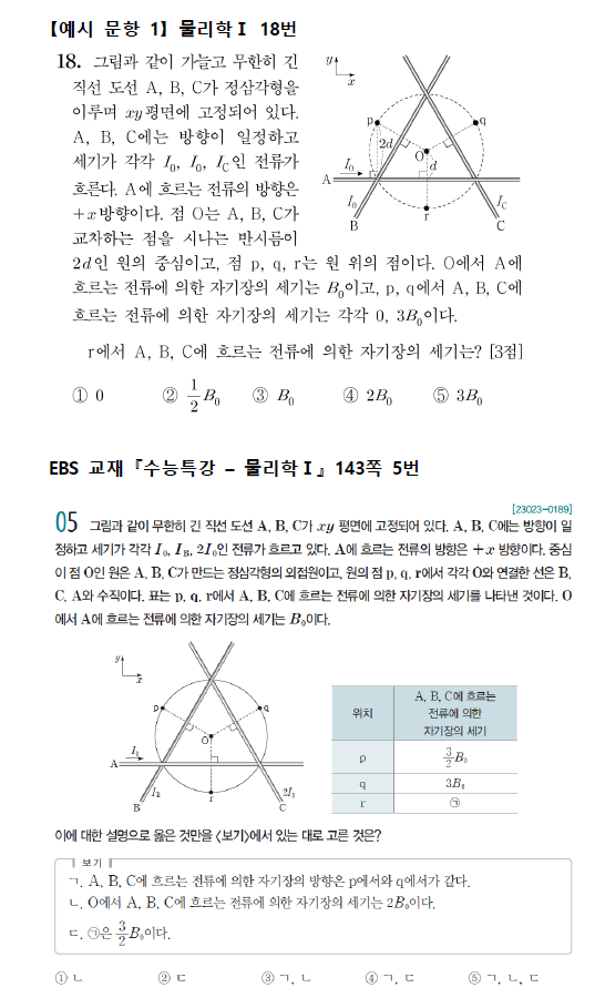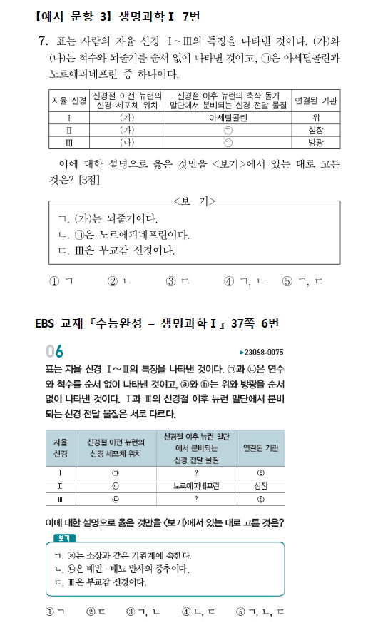 과학탐구 영역에서 연계하여 출제된 문항을 EBS 연계 교재 문항과 비교하여 제시하면 다음과 같다.