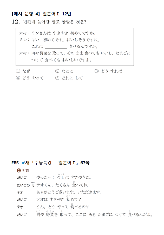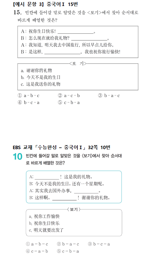 제2외국어/한문 영역에서 연계하여 출제된 문항을 EBS 교재의 내용과 비교하여 제시하면 다음과 같다.