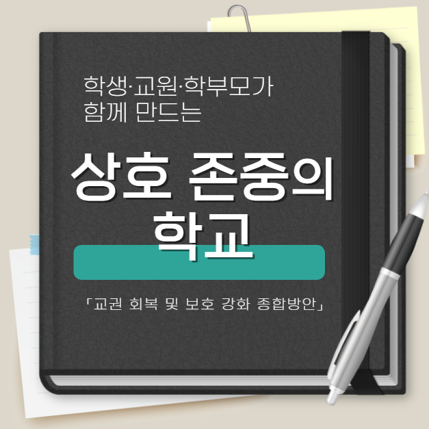 우리가 함께하는 학교는 모두의 노력으로 만들어집니다. 학생, 교원, 학부모가 서로 상호존중과 협력을 실천할 때, 우리의 공교육은 더 나은 방향으로 나아가지 않을까요? 교육 3주체 간 권한과 책임이 조화롭게 존중되는 ‘함께 학교’를 위해 앞으로도 교육 현장에 대한 많은 관심 바랍니다.