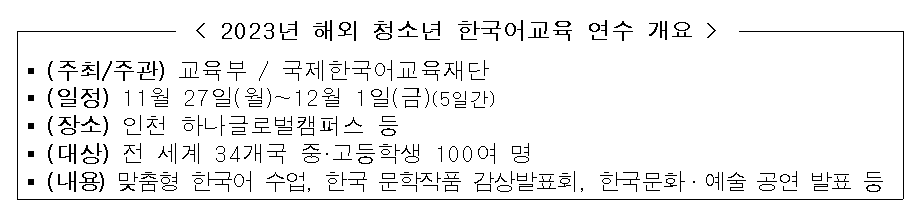 - 2023년 해외 청소년 한국어교육 연수 개최