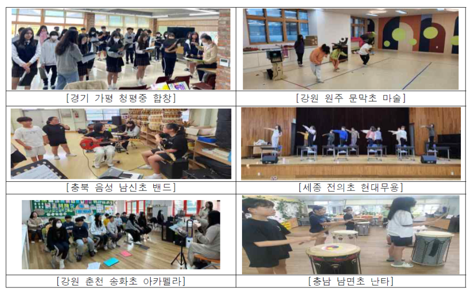 ‘농어촌 우리동네 예술학교’는 농어촌 지역 학생들이 학교수업을 통해 다양한 문화예술체험을 할 수 있도록 문화예술분야 강사 및 프로그램을 지원하는 사업이다. 올해는 전남 해남, 경북 봉화 등 9개 시도의 농어촌 292개교 학생들이 정규수업이나 방학 캠프 등을 통해 전통예술, 연극, 음악, 무용, 만화・영상 등 다양한 문화예술교육에 참여하였다.