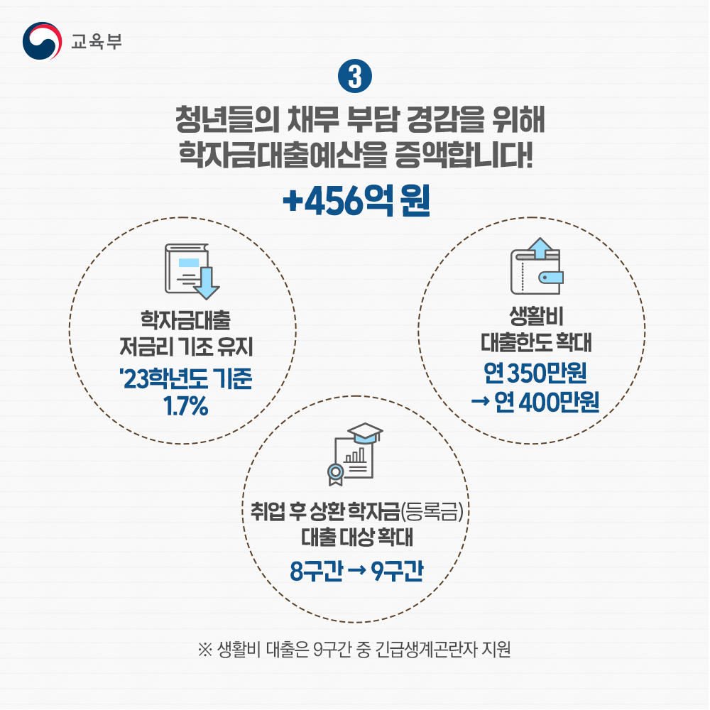청년들의 채무 부담 경감을 위해 학자금대출예산을 증액합니다! +456억 원