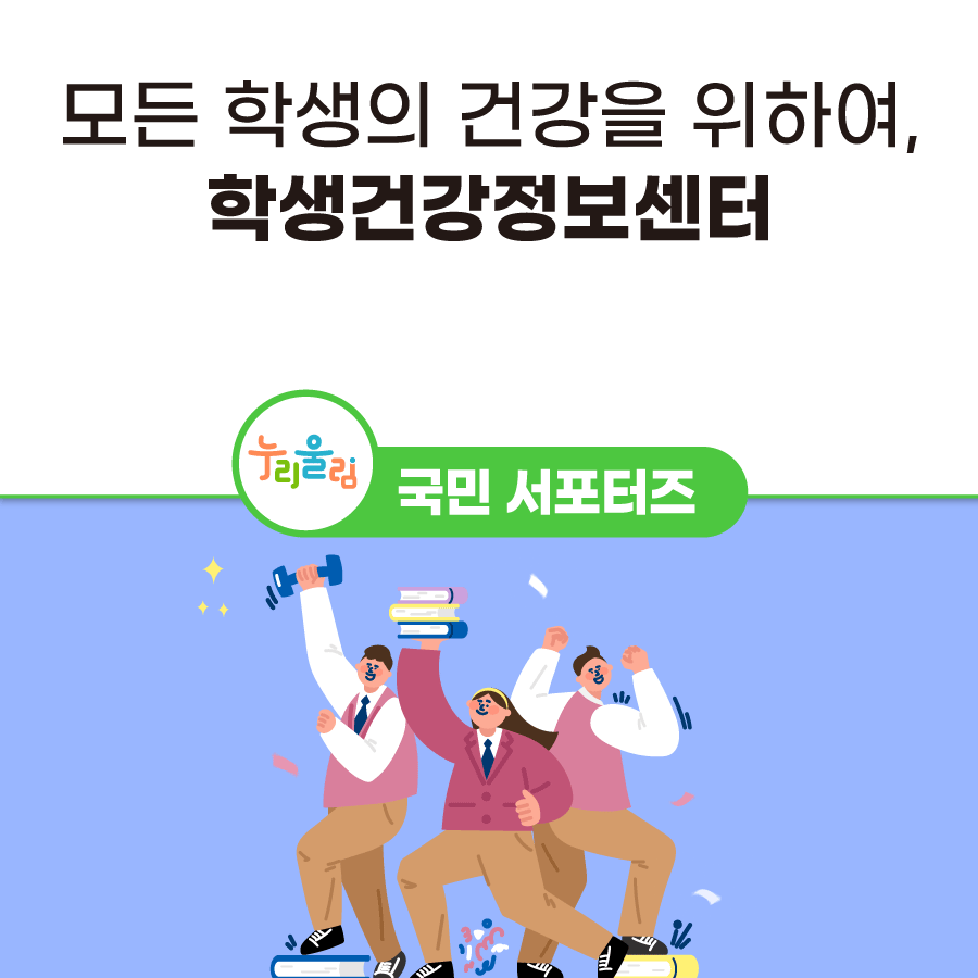 지금까지 학생건강정보센터에서 확인할 수 있는 다양한 정보에 대해 알아보았는데요. 학생들의 더 건강한 생활을 위해 학생건강정보센터에 많은 관심 부탁드립니다.