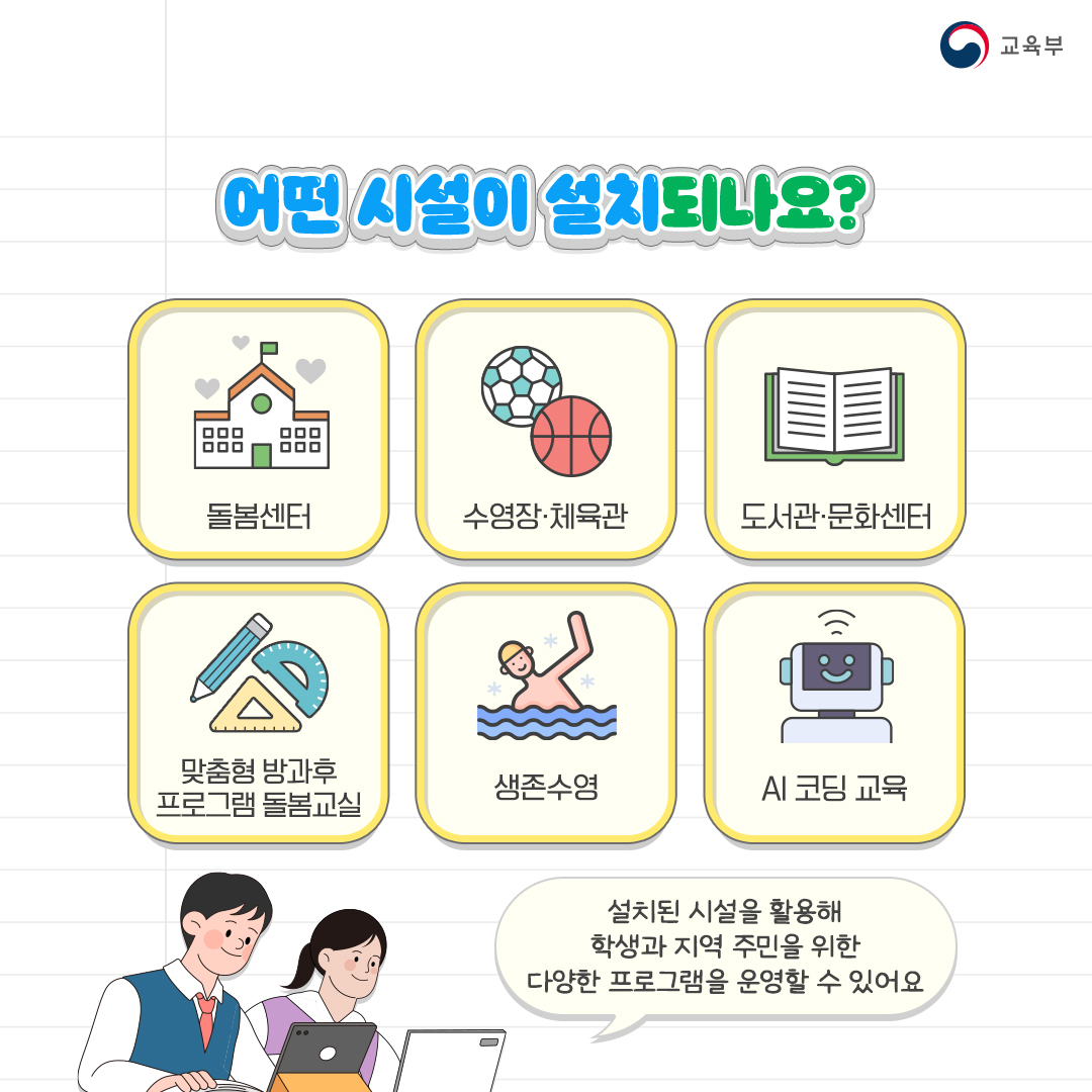 학생과 지역주민이 함께 사용하는 교육ㆍ돌봄, 문화ㆍ체육 복합시설을 말해요.