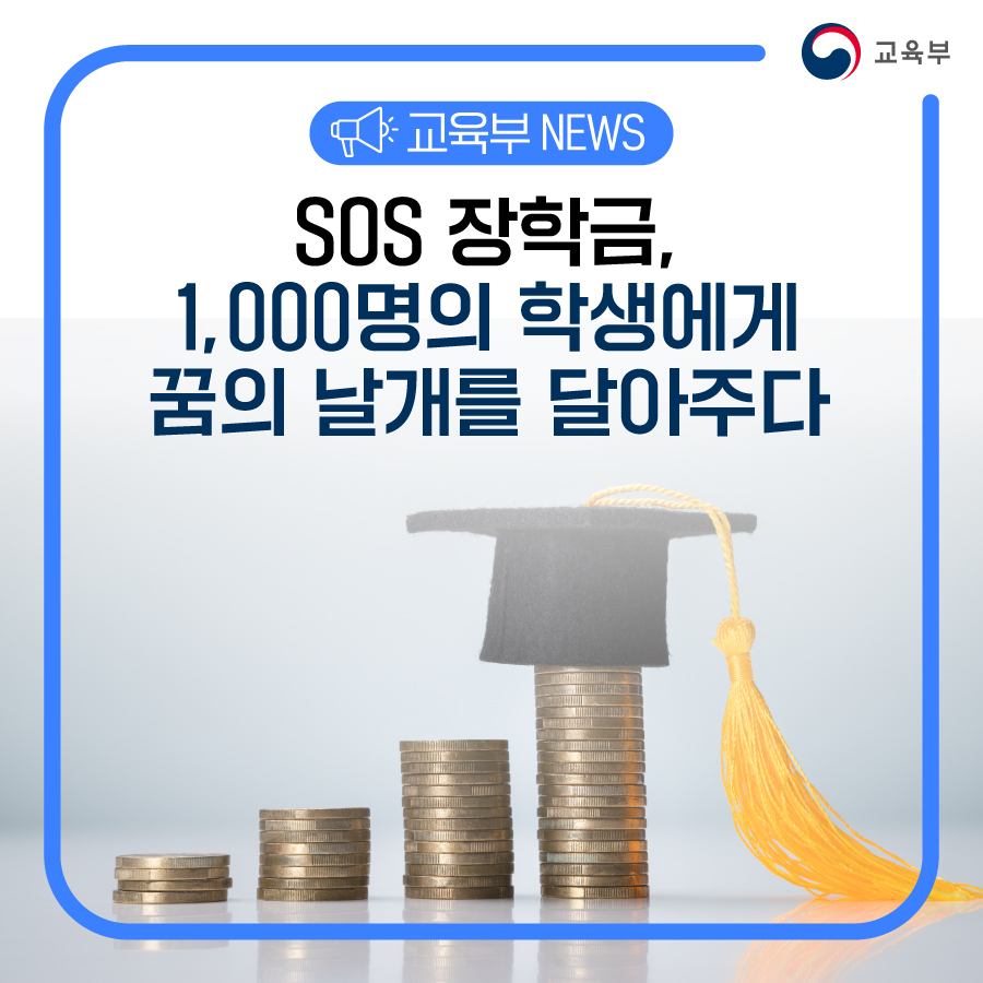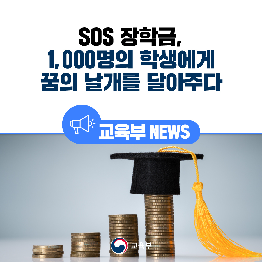 교육부(부총리 겸 교육부장관 이주호)와 한국장학재단(이사장 배병일)은 긴급 상황에 있는 중·고등학생들이 학업을 중단하지 않도록 올해 복권기금 꿈사다리 장학사업을 통해 에스오에스(SOS) 장학생 1,000명을 선발하였다.