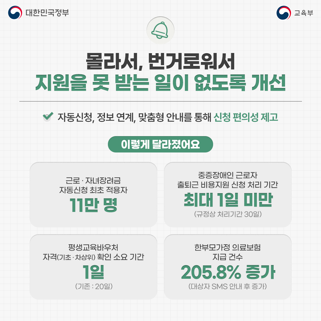 몰라서, 번거로워서 지원을 못 받는 일이 없도록 개선