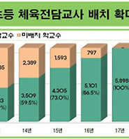 ’17년까지 모든 초등학교에 초등학교 체육전담교사를 최소 1명 이상 배치하여, 초등학교 체육수업을 보다 내실화 하도록 할 계획입니다.