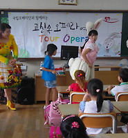 독서 연극활동이라는 코너를 살펴보겠습니다. 창의적 체험활동으로 이 교실에서는 "선녀와 나무꾼"이라는 책을 읽고 독후활동으로 이야기를 학생들이 재구성하였습니다. 새로운 내용의 선녀와 나무꾼을 역할극을 통하여 표현해보았는데,