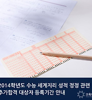 2014학년도 수능 세계지리 성적 정정 관련 추가합격 대상자 등록기간 안내 (0) | 2015.02.11 |