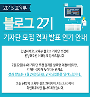 교육부 블로그 2기 기자단 모집 결과 발표가 연기되었음을 알려드립니다. (0) | 2015.07.22 |