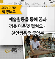 예술활동을 통해 꿈과 끼를 마음껏 펼쳐요 - 천안쌍용중 국악부 (0) | 2015.10.02 |