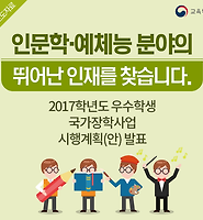 인문학·예체능 분야의 뛰어난 인재를 찾습니다. (0) | 2017.03.30 |