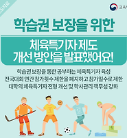 | 학습권 보장을 위한 체육특기자 제도 개선 방안을 발표했어요! (0) | 2017.04.27 |