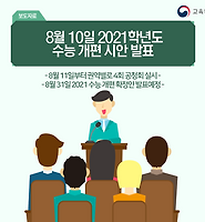 | 8월 10일 2021학년도 수능 개편 시안 발표 (0) | 2017.08.09 |