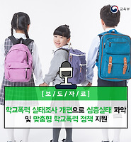 | 학교폭력 실태조사 개편으로 심층실태 파악 및 맞춤형 학교폭력 정책 지원 (0) | 2017.12.08 |