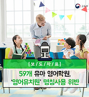 | 59개 유아 영어학원, ‘영어유치원’ 명칭사용 위반 (0) | 2017.12.18 |