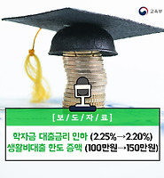 | 2018학년도 1학기 학자금 대출금리 2.25%→2.20%로 인하! 일반상환학자금 생활비대출 한도 100만원→150만원으로 증액! (0) | 2018.01.04 |