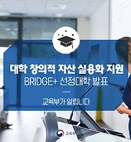 ‘대학 창의적 자산 실용화 지원(BRIDGE+) 사업’ 선정대학 발표 (0) | 2018.04.12 |
